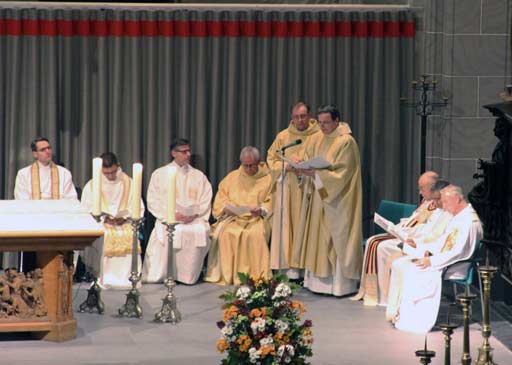 De overige parochiële koren zongen vanaf het koorplateau beneden in de kerk de Nederlands gezangen.